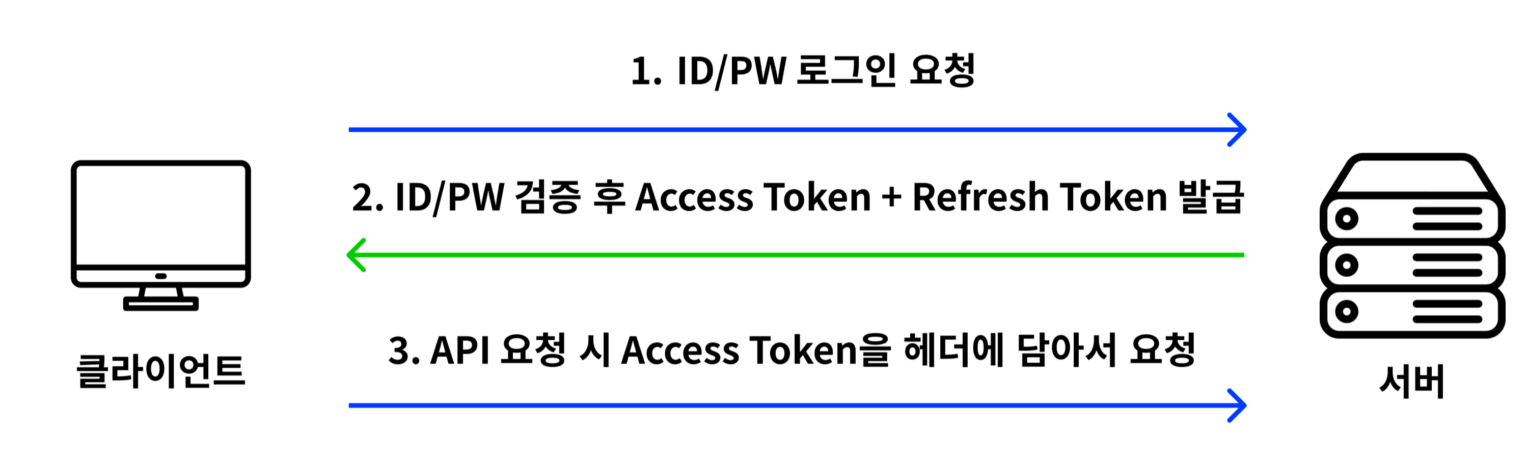3. 클라이언트는 발급받은 Access Token을 헤더에 담아서 서버가 허용한 API를 사용할 수 있게 된다.