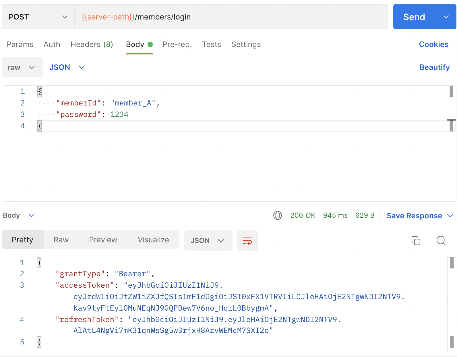 TokenInfo tokenInfo = memberService.login(memberId, password);